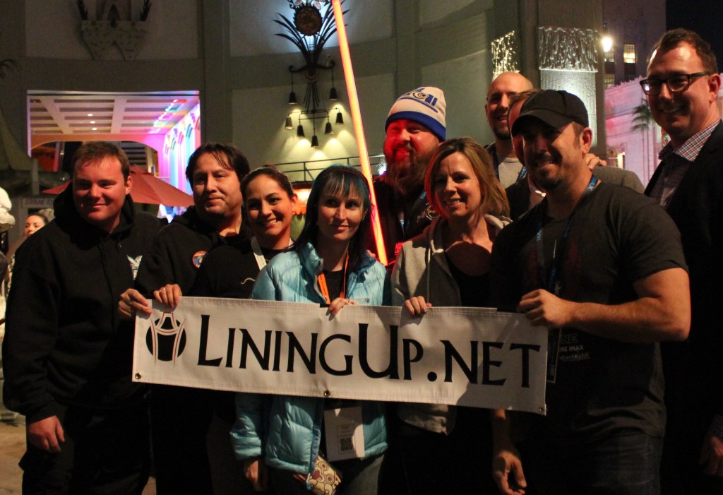 The LiningUp.Net Line for Star Wars: The Last Jedi was fun-filled to be sure. The Line Up started on the evening of December 7, 2017 with a number of the Line being given seats for the 200th Episode of Fatman on Batman (now called Fatman Beyond) being held in the forecourt of the TCL Chinese Theatres Imax instead of Scum & Villainy Cantina. Scum & Villainy was present to provide non-alcoholic Star Wars themed drinks for donations to Starlight Children’s Foundation. The TCL Chinese donated a 55-inch TCL 4K HDR television to be raffled off. The raffle tickets were $10 each and all of the proceeds went to the Starlight Children’s Foundation. I bought two raffle tickets and got a blue milk drink.